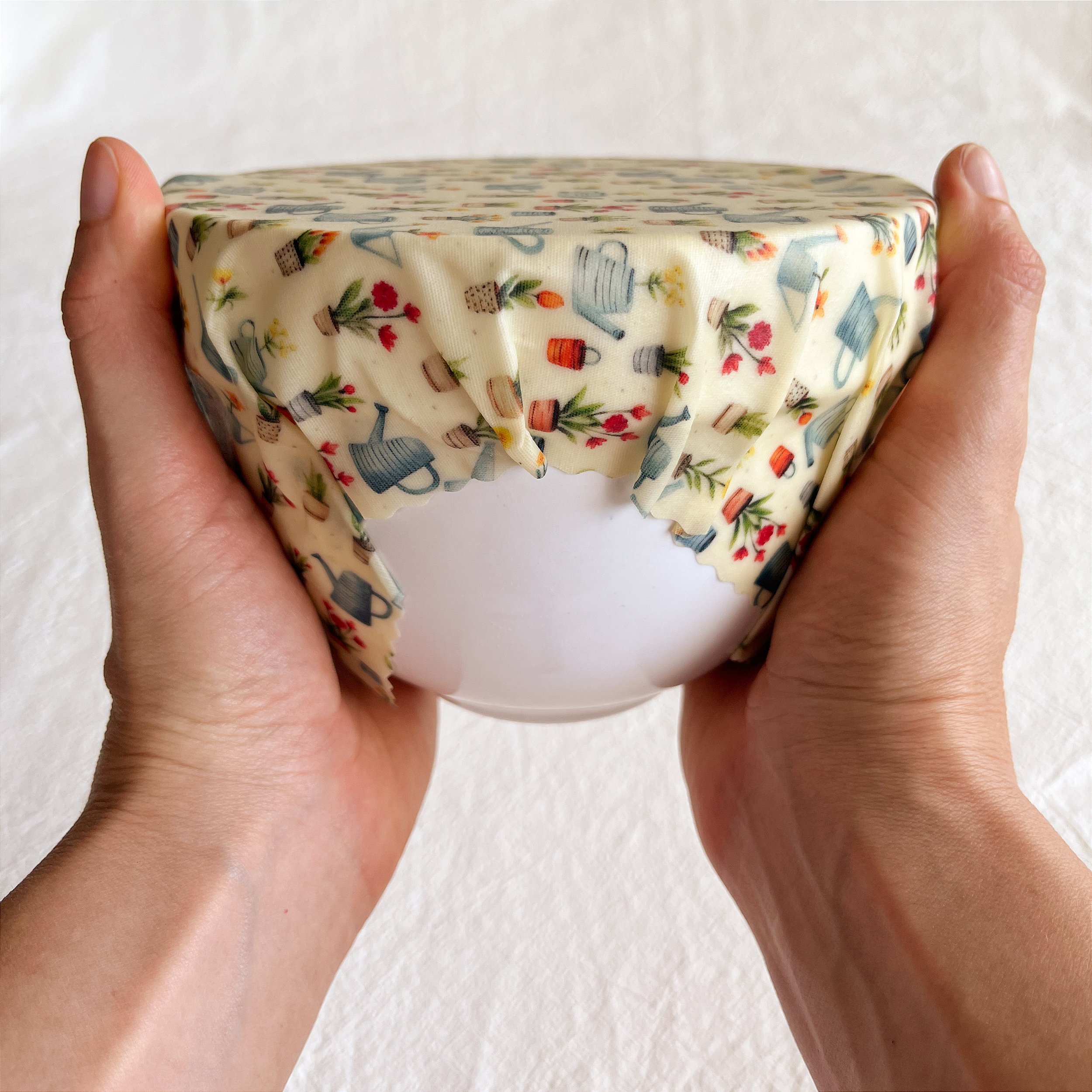 Envolva o alimento com o Pano de Cera e aperte com as duas mãos até que o embrulho fique vedado. É o calor das suas mãos que irá ativar a cera de abelhas e fazê-la grudar. Se não estiver aderindo na primeira tentativa, amasse e desamasse duas vezes para ativar a cera e, então, embrulhe o seu alimento.